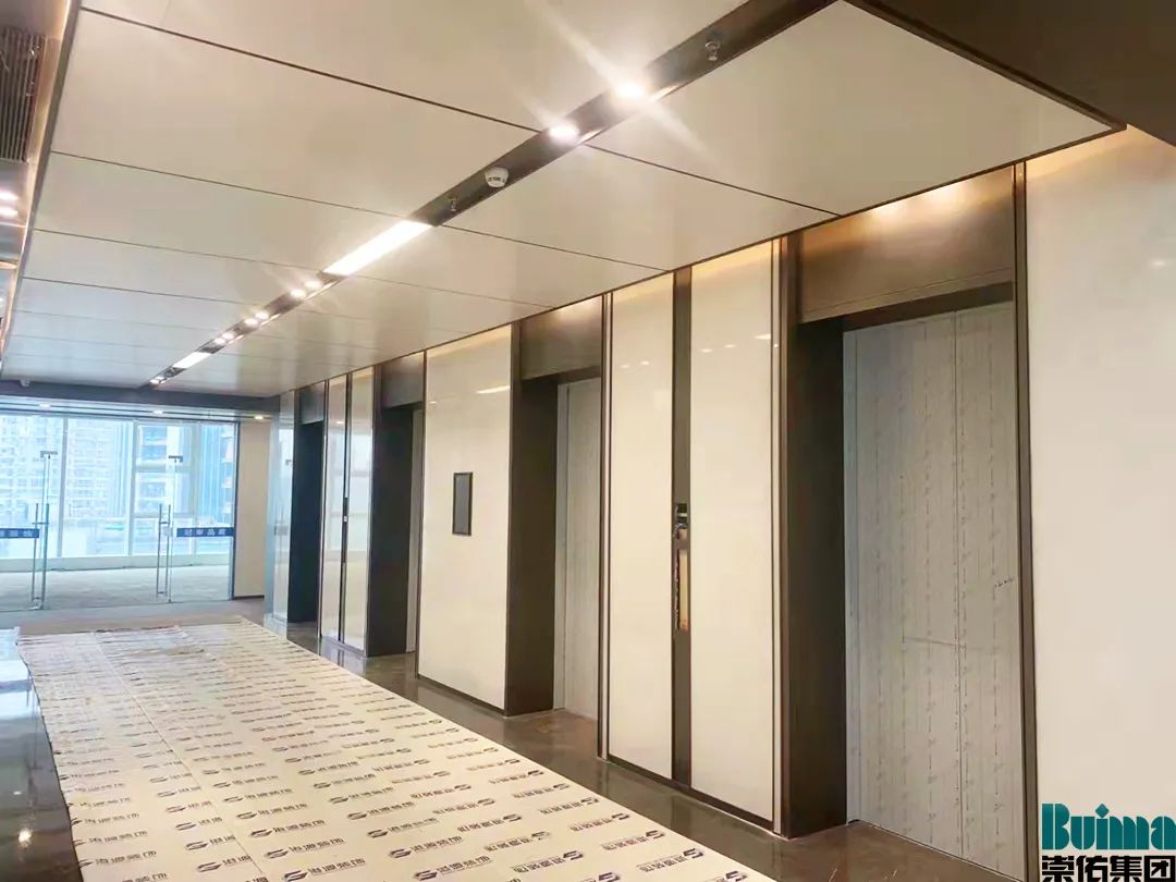 實景實拍---武漢天風大廈的電梯廳及過道,采用的就是崇佑的複合瓦楞鋁板吊頂,優質合金鋁麵板及瓦楞,使得該產品具有良好的平整度、整體性視覺效果。